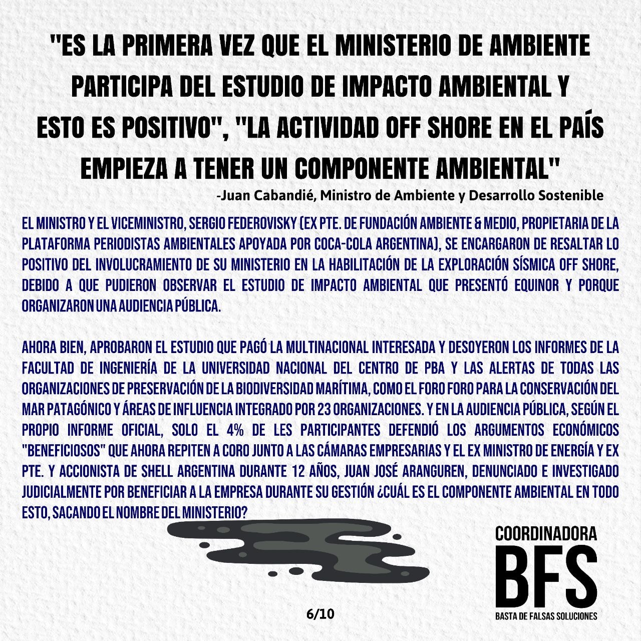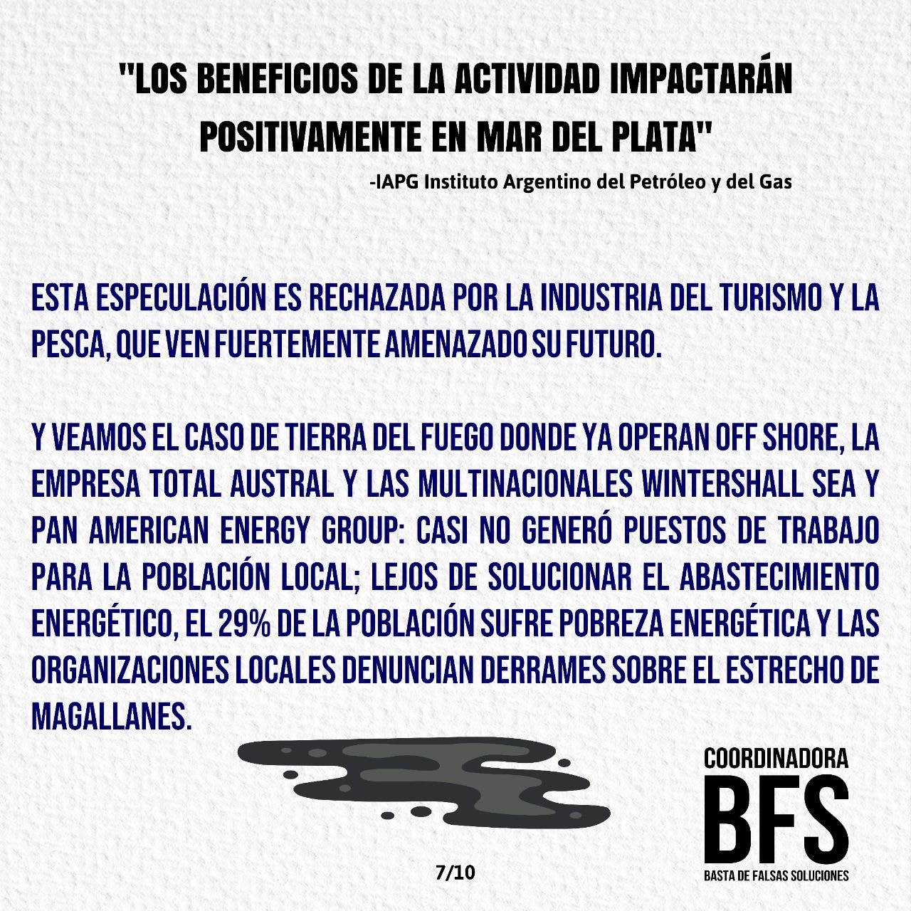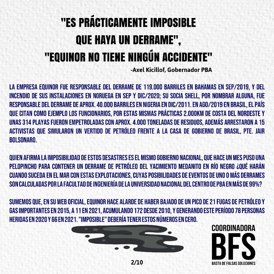 Queremos recuperar para volver a compartir un texto trabajado por la Coordinadora Basta de Falsas Soluciones para responder a los defensores de la instalación de las Petroleras Off Shore en el Mar Argentino. Para más textos de la BFS se pueden acercar a sus redes, @bastadefalsassoluciones en Instagram. ¡Buena Lectura!
